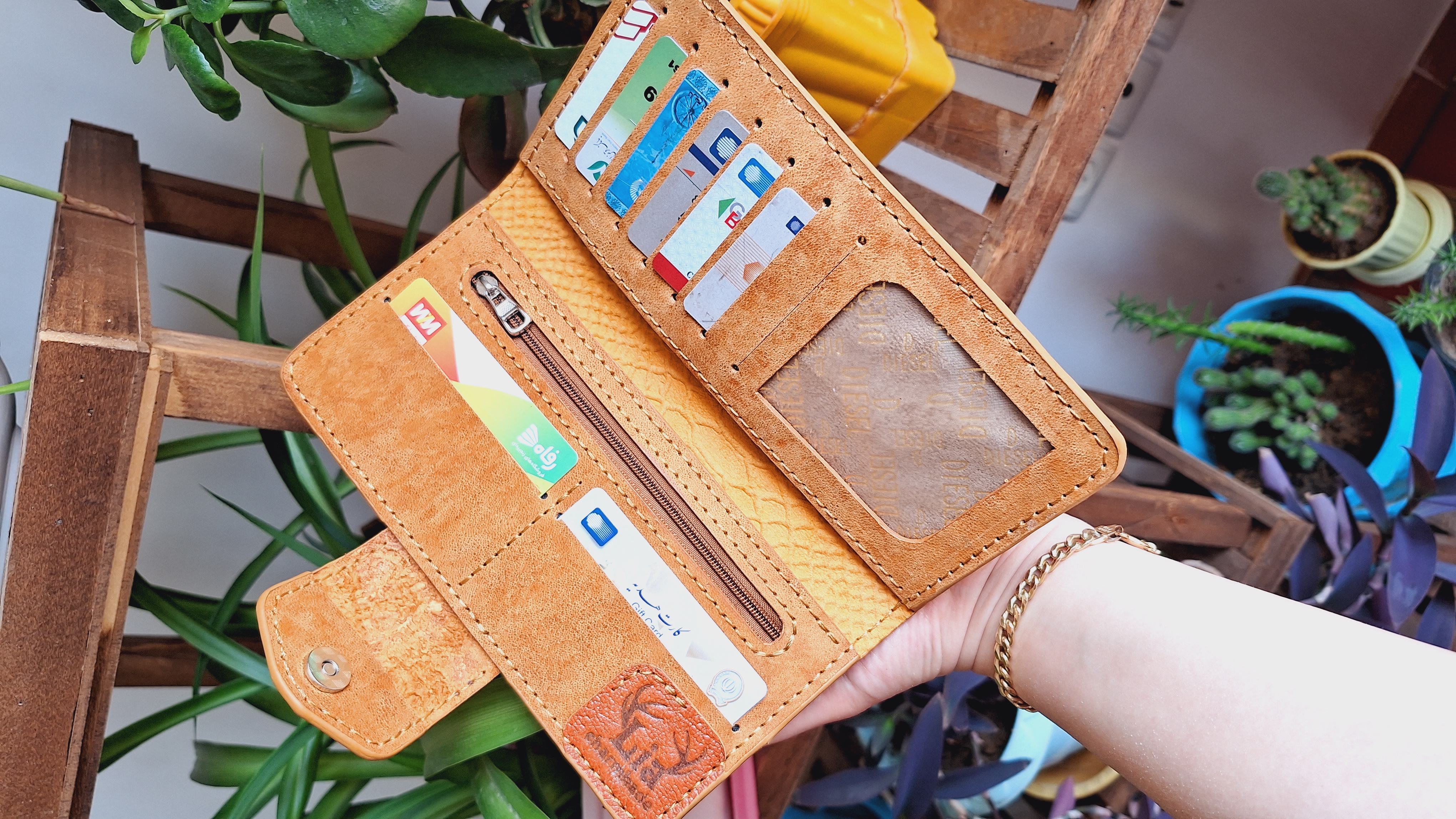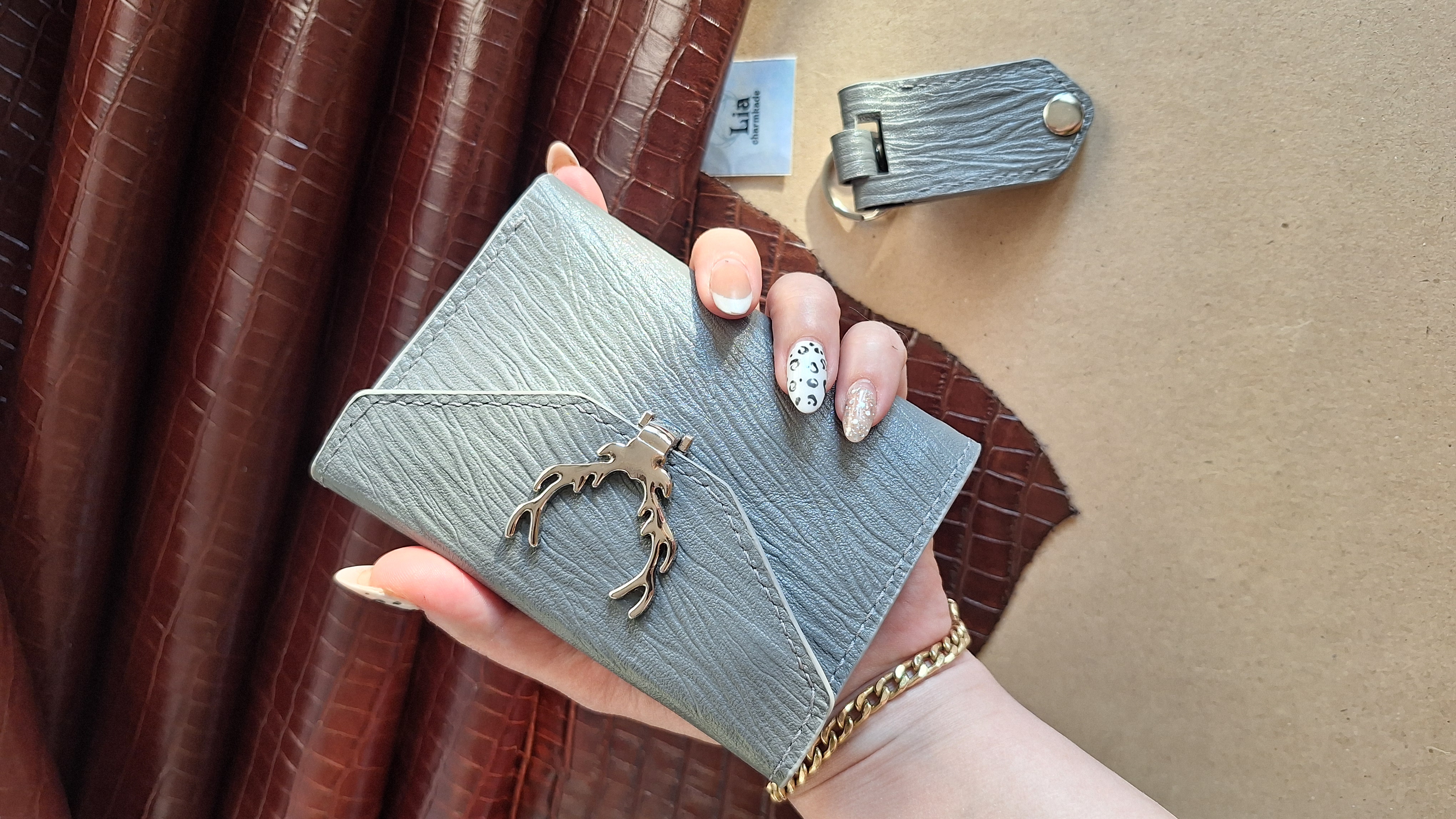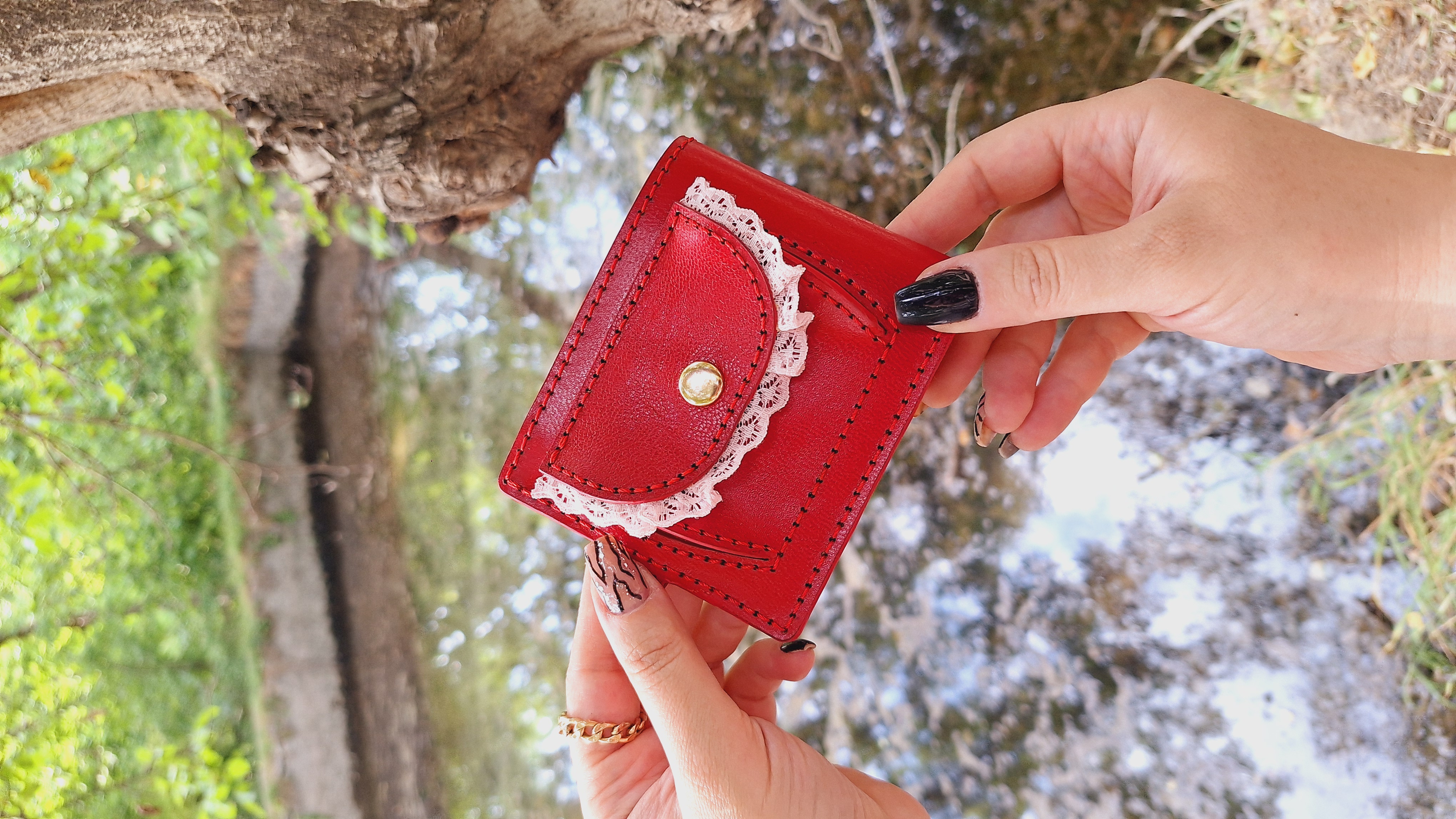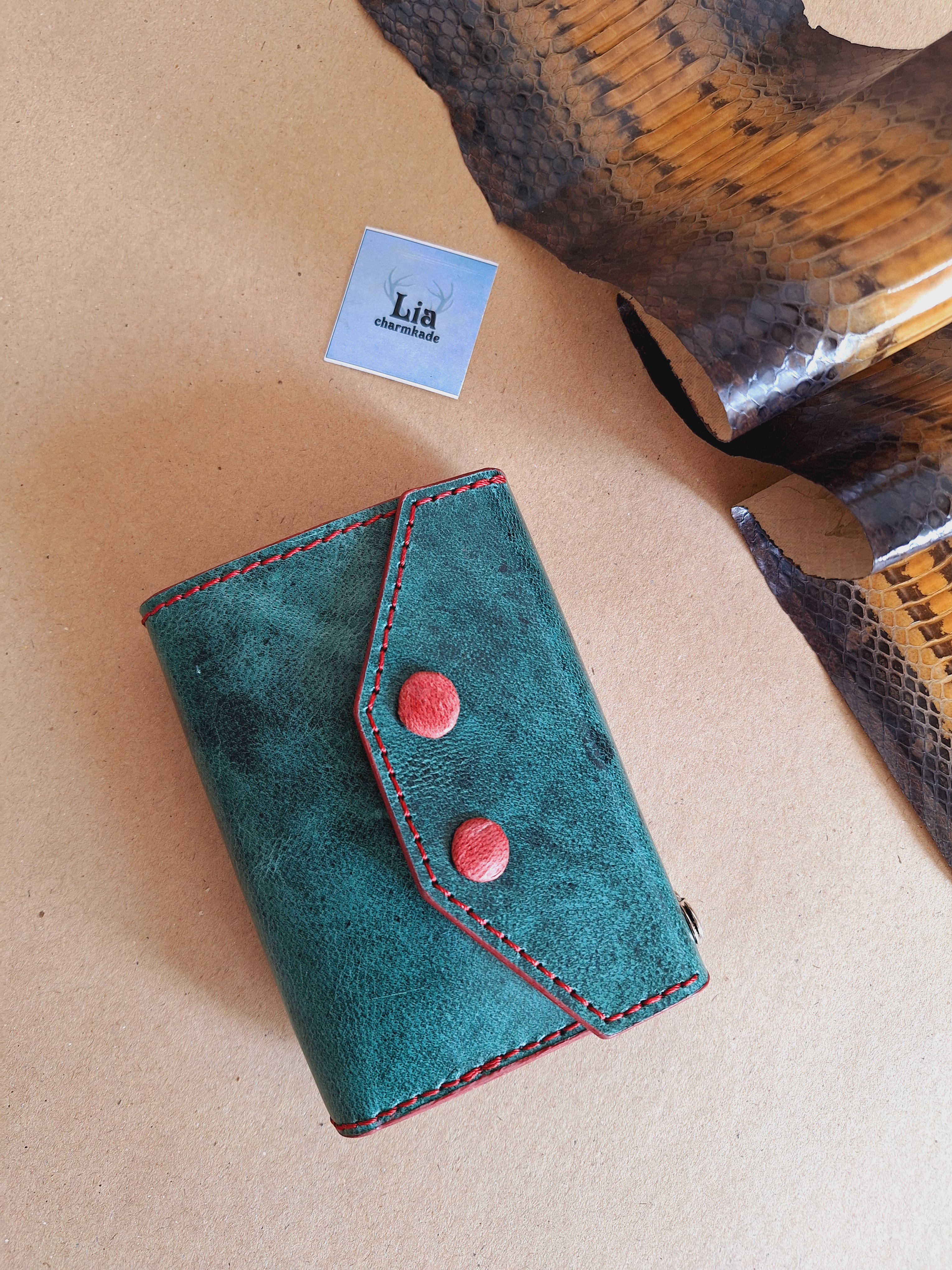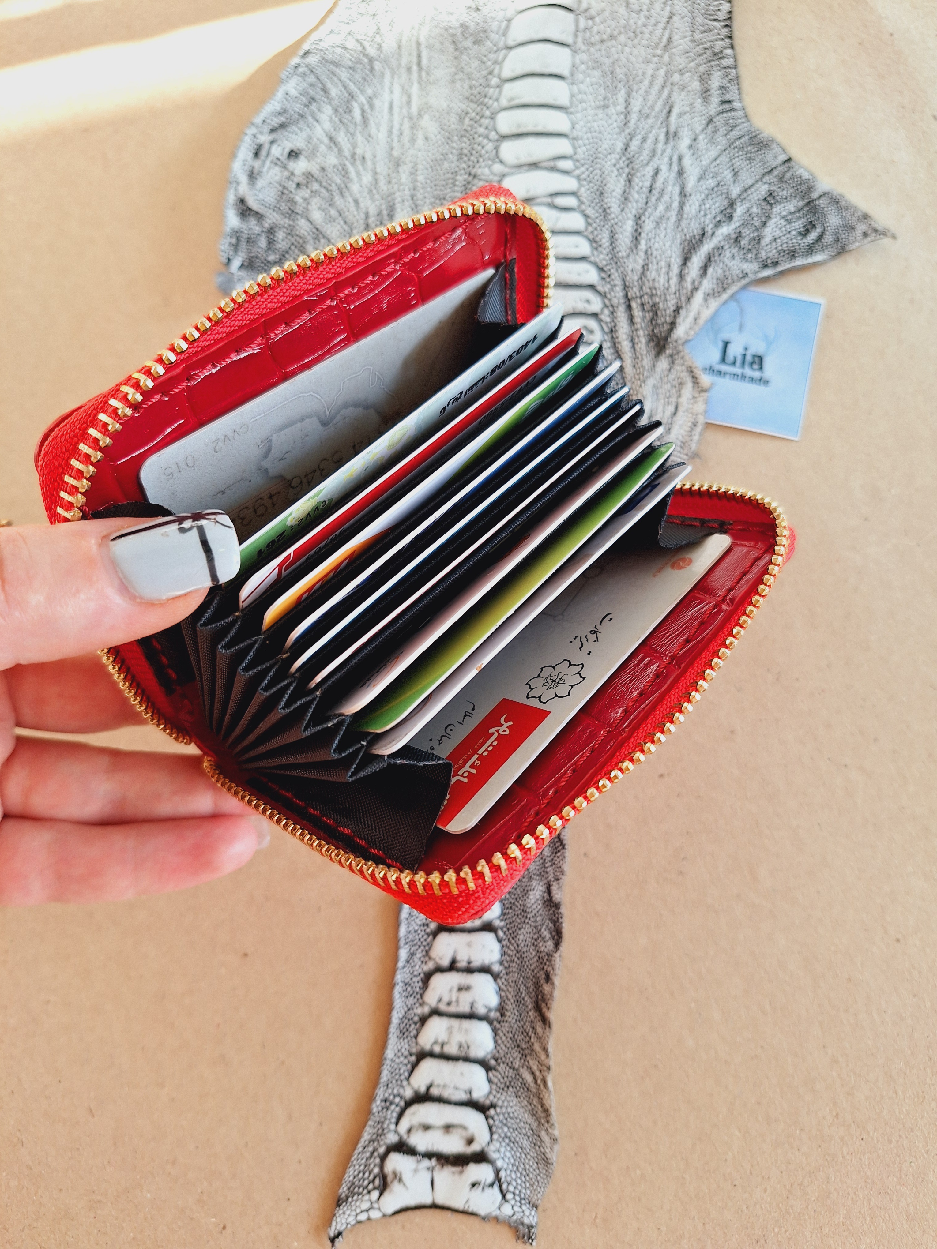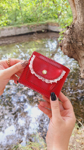 کیف پول مینی دخترانه چرم طبیعی دستدوز مناسب استفاده روزمره