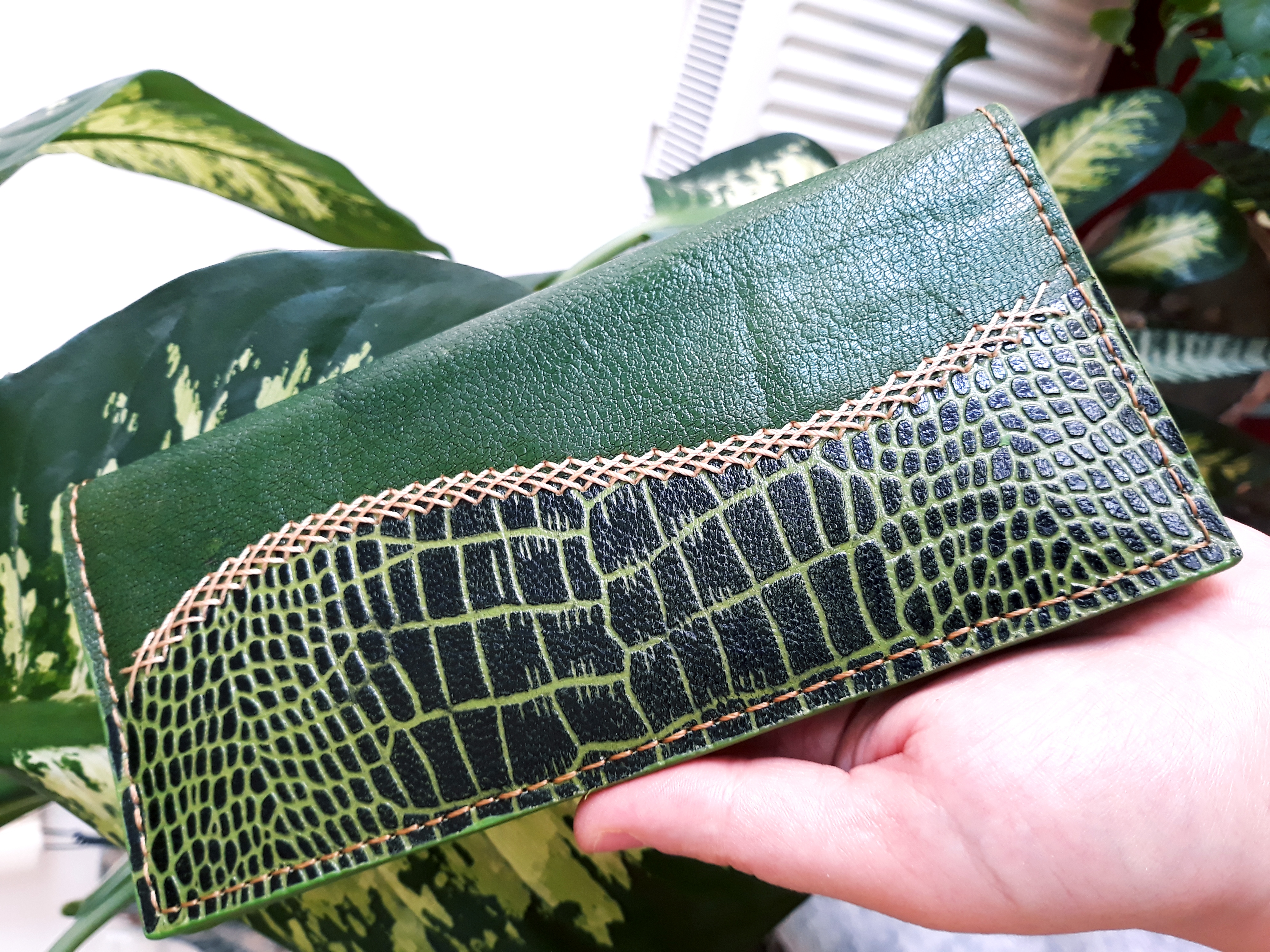 کیف پول زنانه چرم طبیعی طرح دوخت حصیری