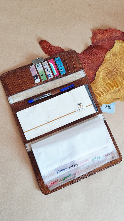 این محصول مختص آقایونی است که زیاد با چک سرو کار دارند، برگه چک ها همیشه لای دفتر هست و مرتب و براساس تاریخ نیس، این البوم چک با داشتن ۱۲ جای مجزا که اسامی ماه ها به ترتیب نوشته شده و هر ماه دوجای مجزا هم دارد که چک های برگشتی و وصولی جدا شود. این کیف که تماما با چرم گاوی درجه یک دوخته شده در واقع کیف مدارک و دسته چک و کیف پول هست که می تواند اسکناس، موبایل، کارت اعتباری، خودکار ، کلی برگه چک، مدارک بیمه و ... به سهولت جابگیرد.