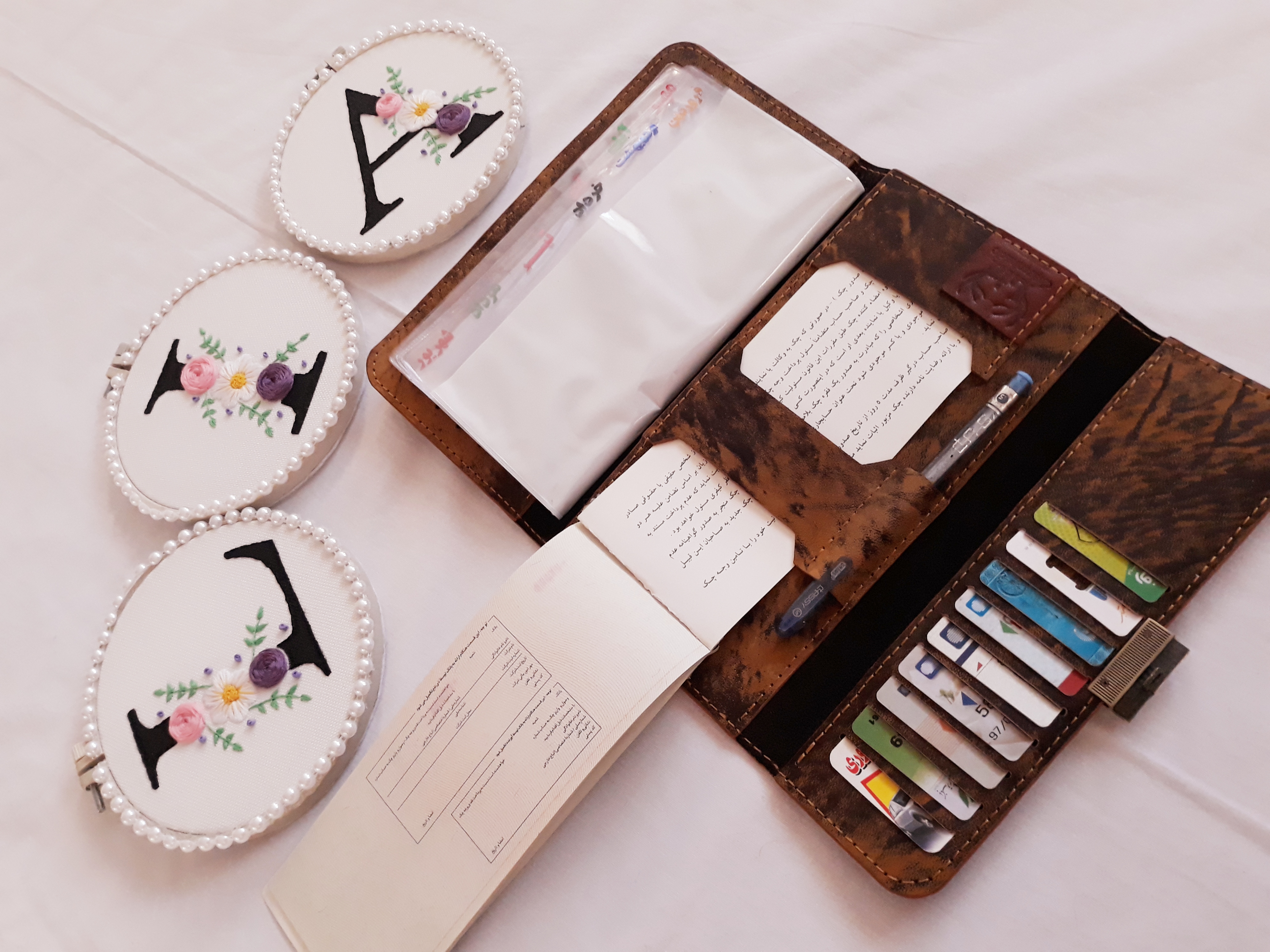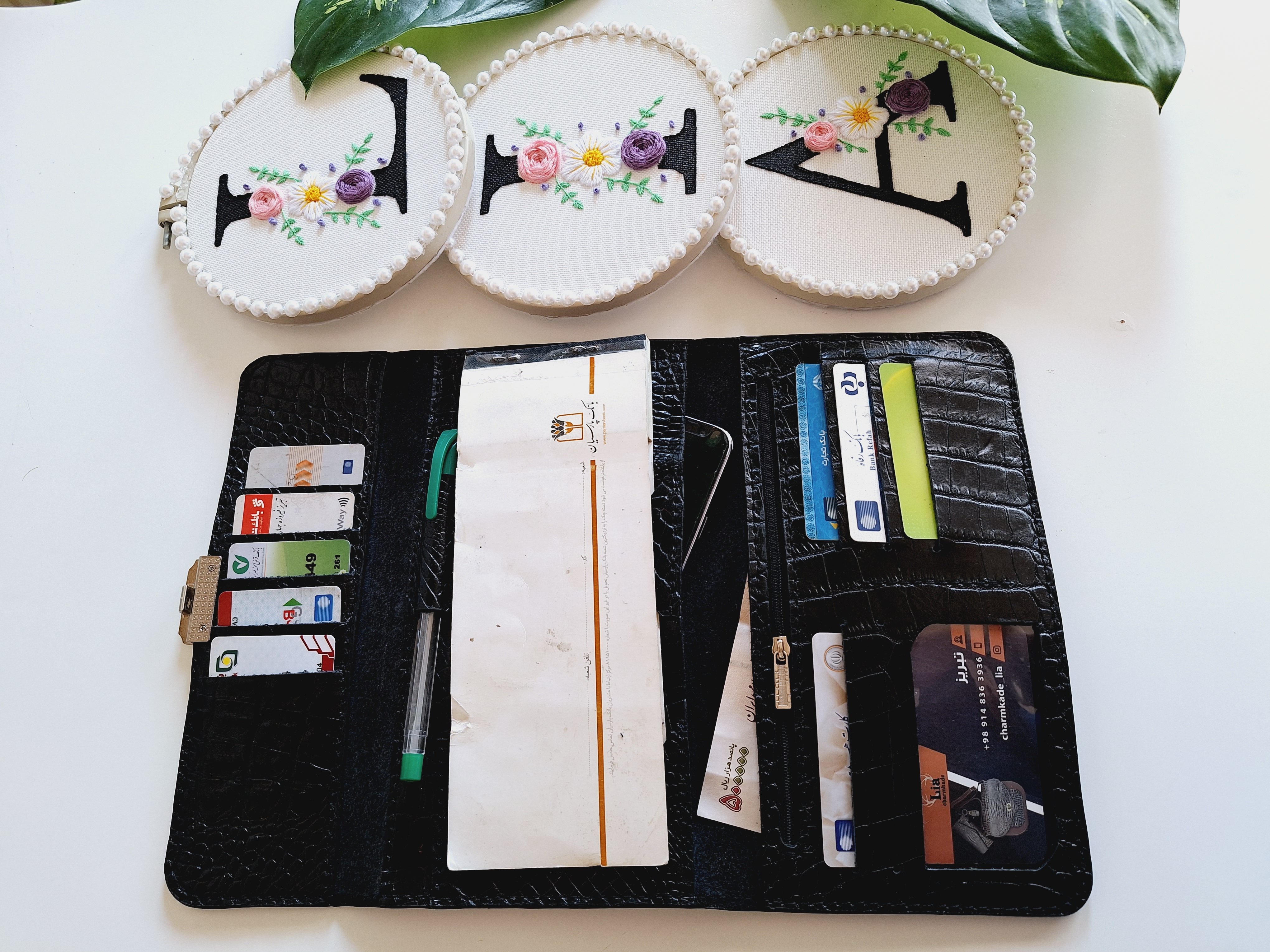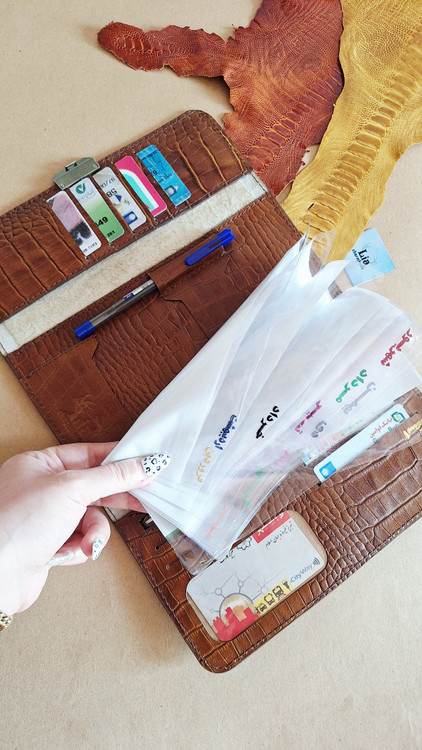 جای کارت عموما ۵تا ، جای دسته چک، خودکار، اسکناس، محفظه زیپ دار