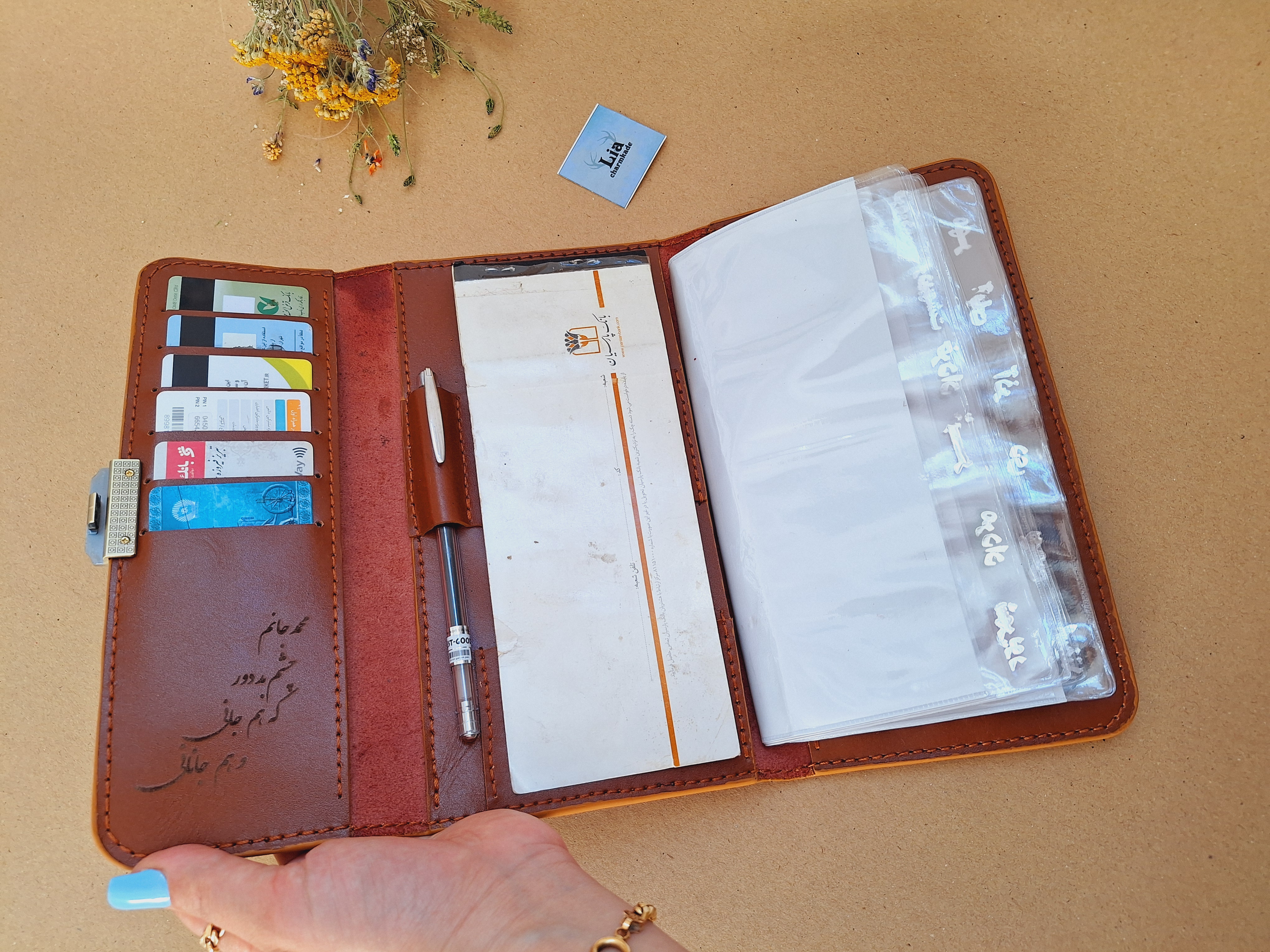 از محبوب ترین البوم چک های چرم لیا که در عین جادار بودن، بسیار خوشدست، منظم همه چیز در جای خود، مخصوص کسانی که مدارک و کارت و برگه چک زیاد دارند.