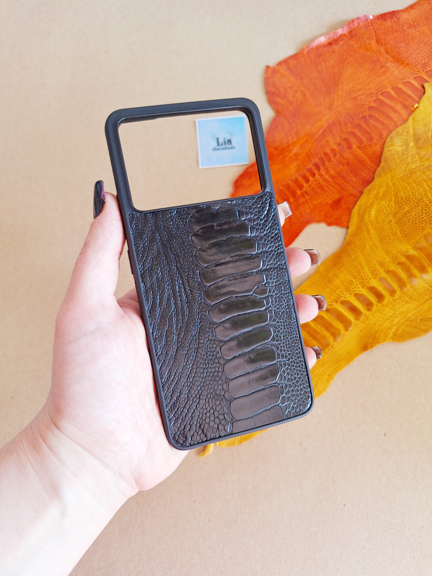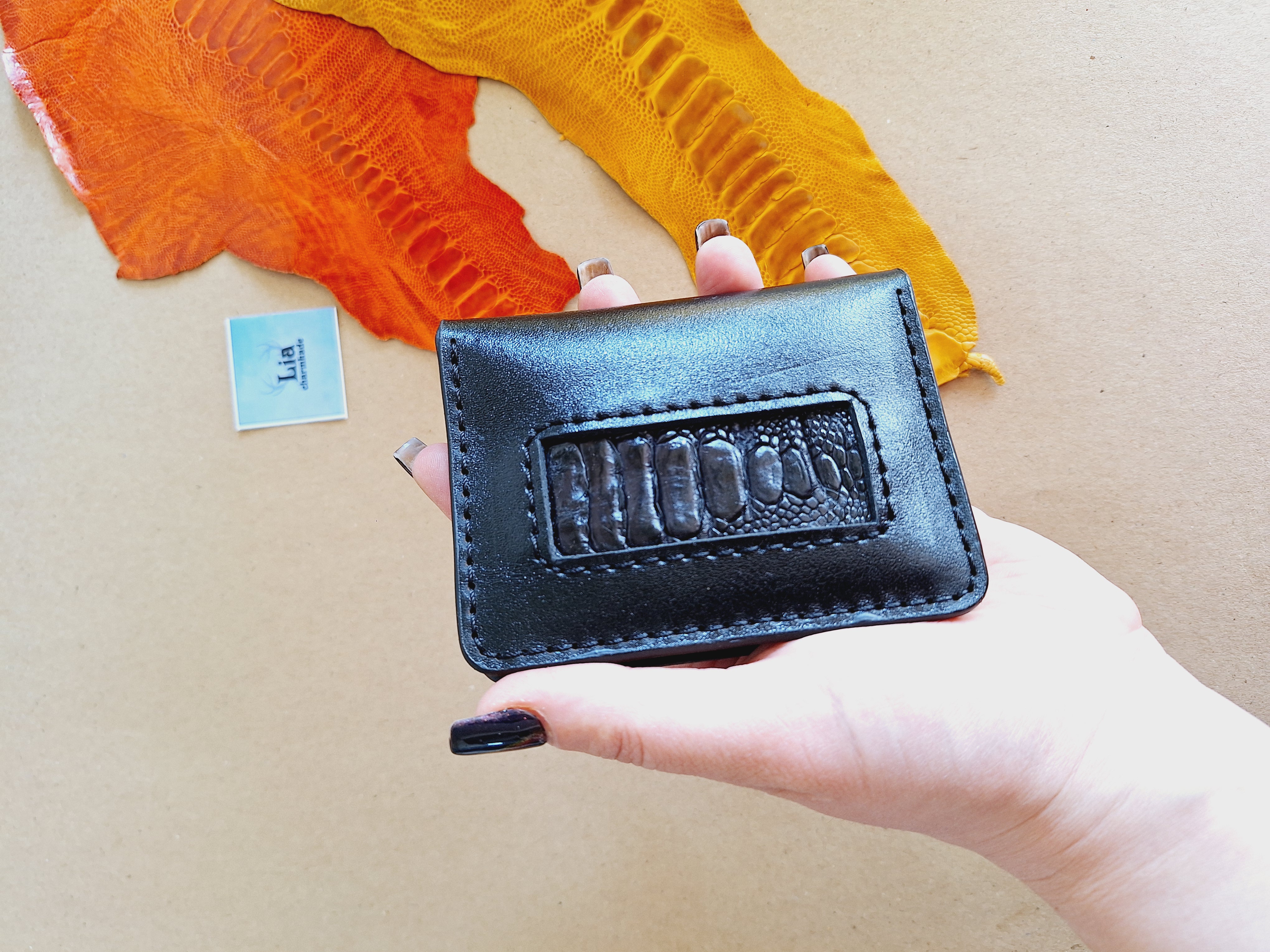 جنس: چرم طبیعی گاوی و ساق شترمرغ (اثری دستساز و دستدوز)
