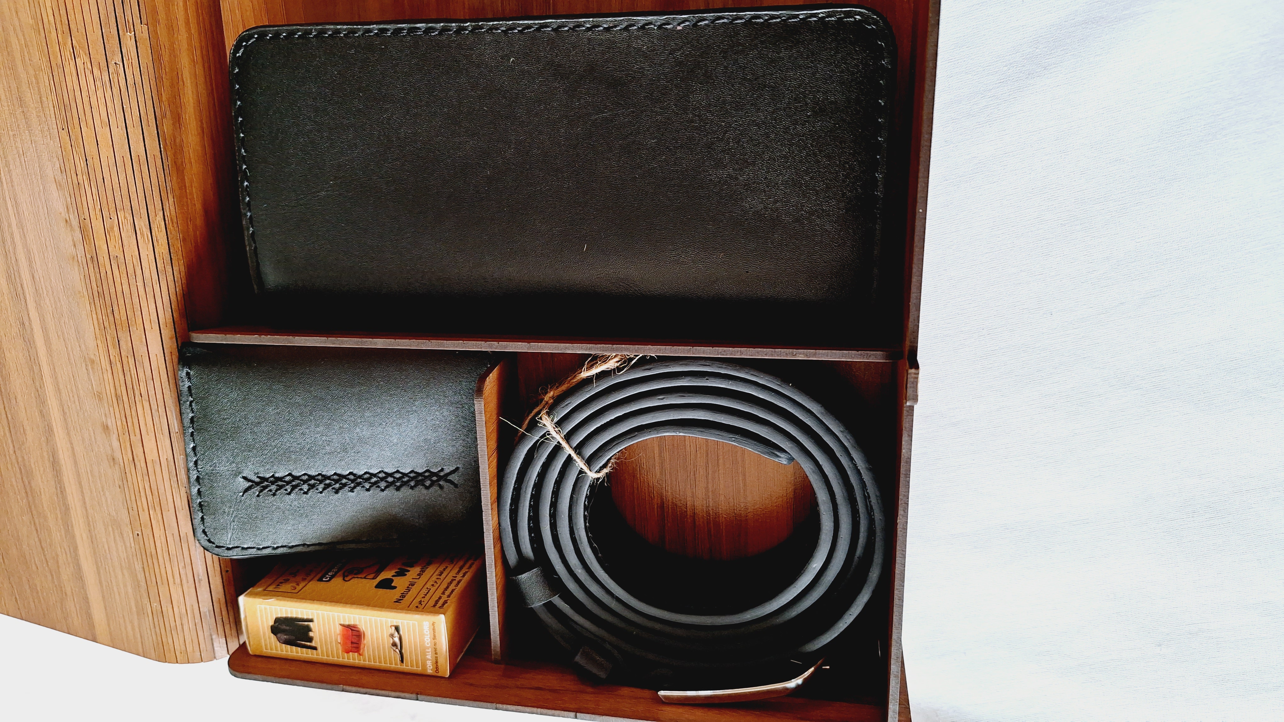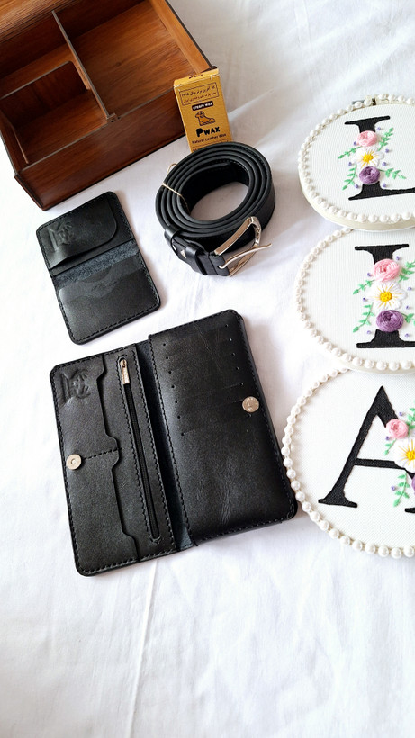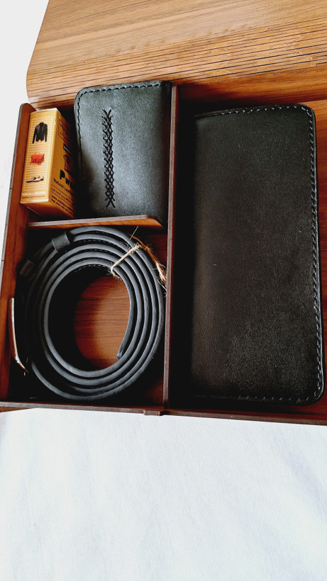آیتم های ست: کمربند سگک میخی، جاکارتی تمام چرم، کیف کتی جای گوشی