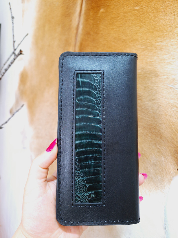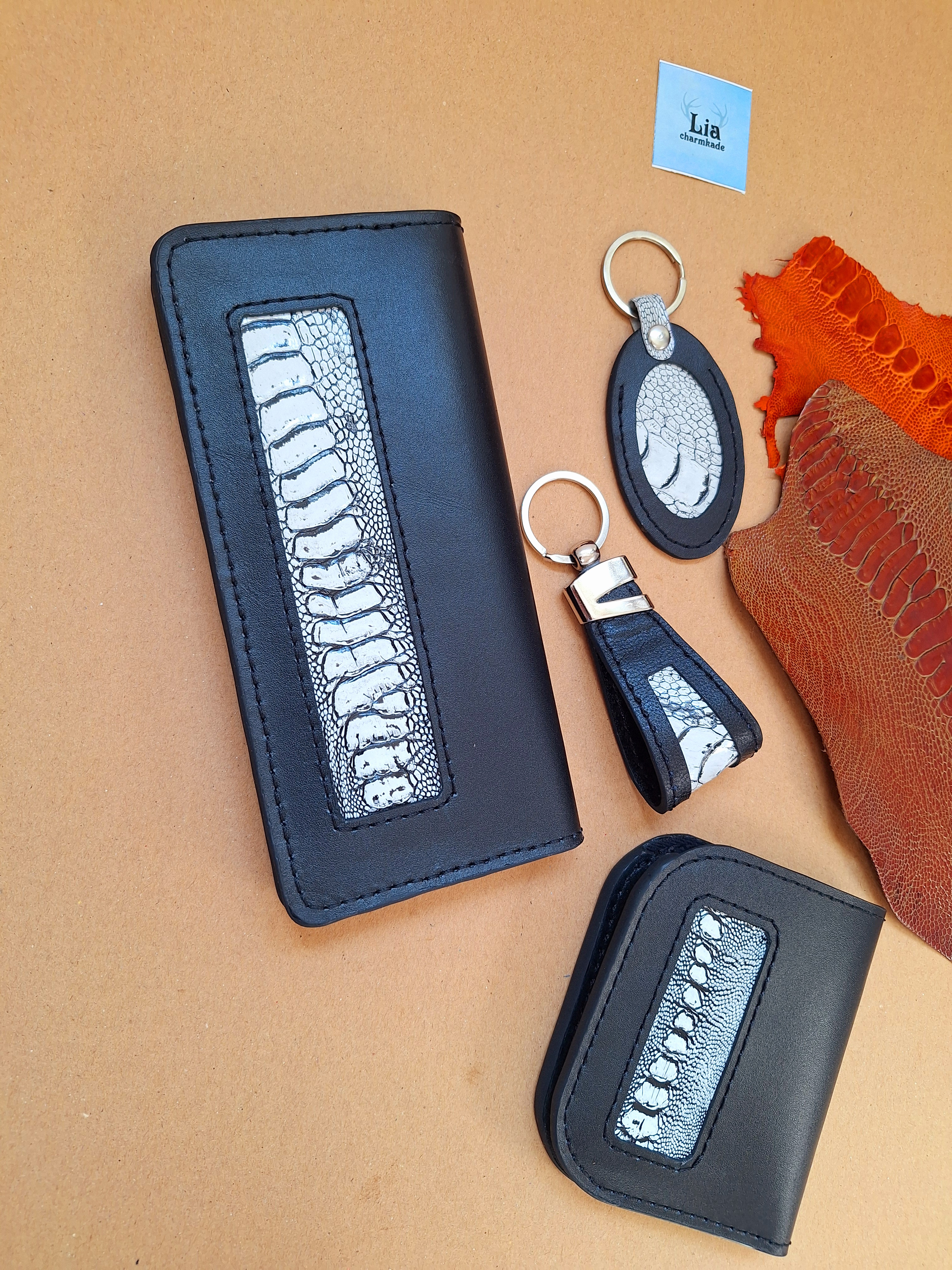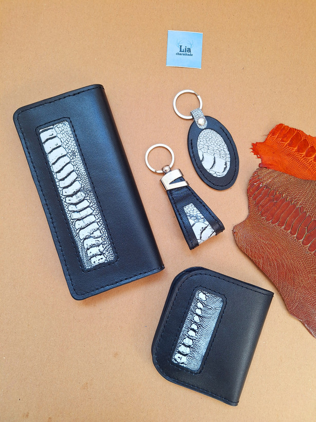 جنس: چرم طبیعی گاوی و ساق شترمرغ (اثری دستساز و دستدوز)