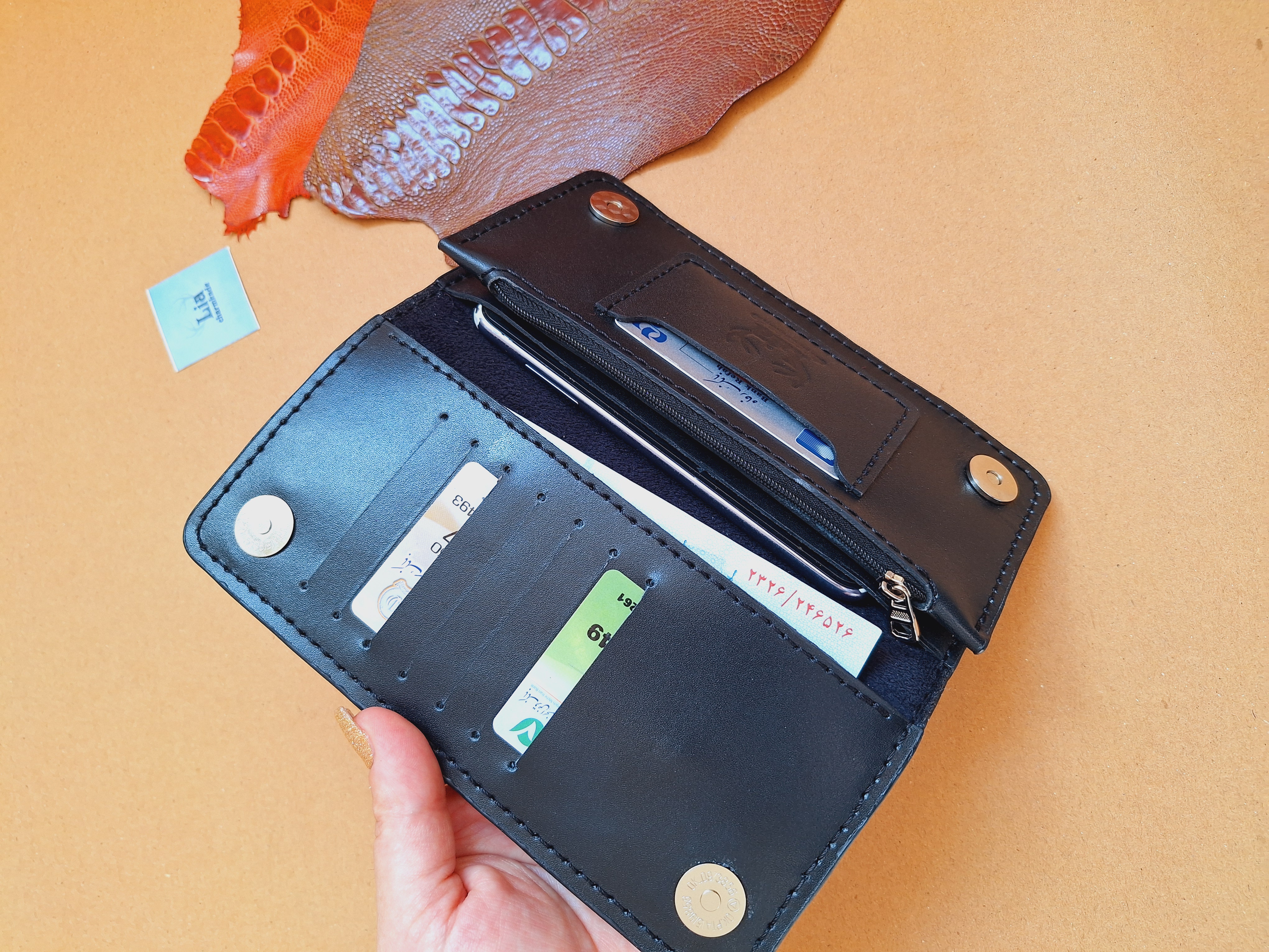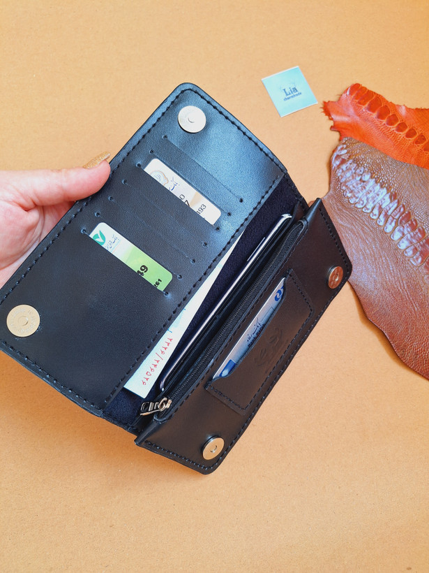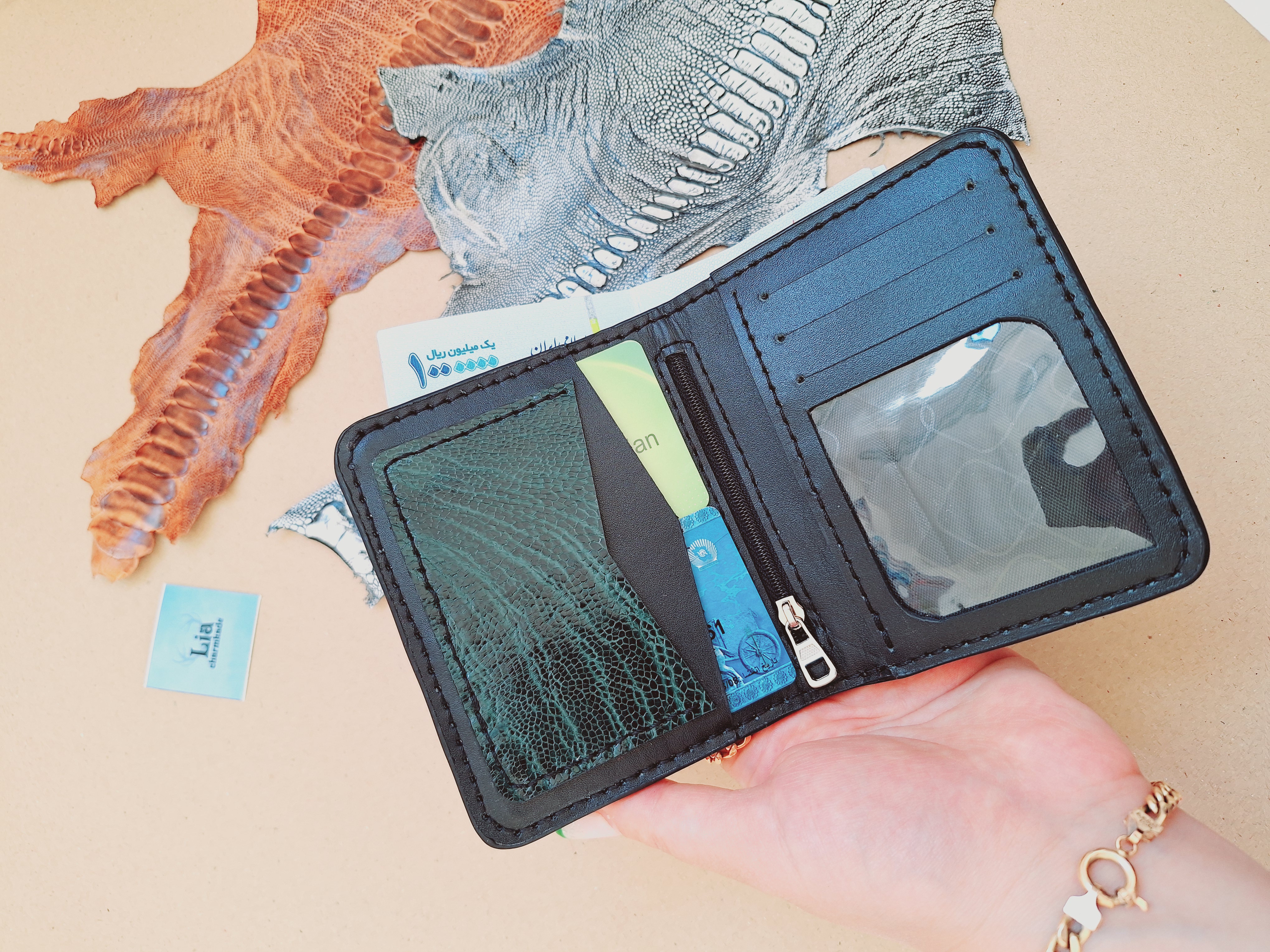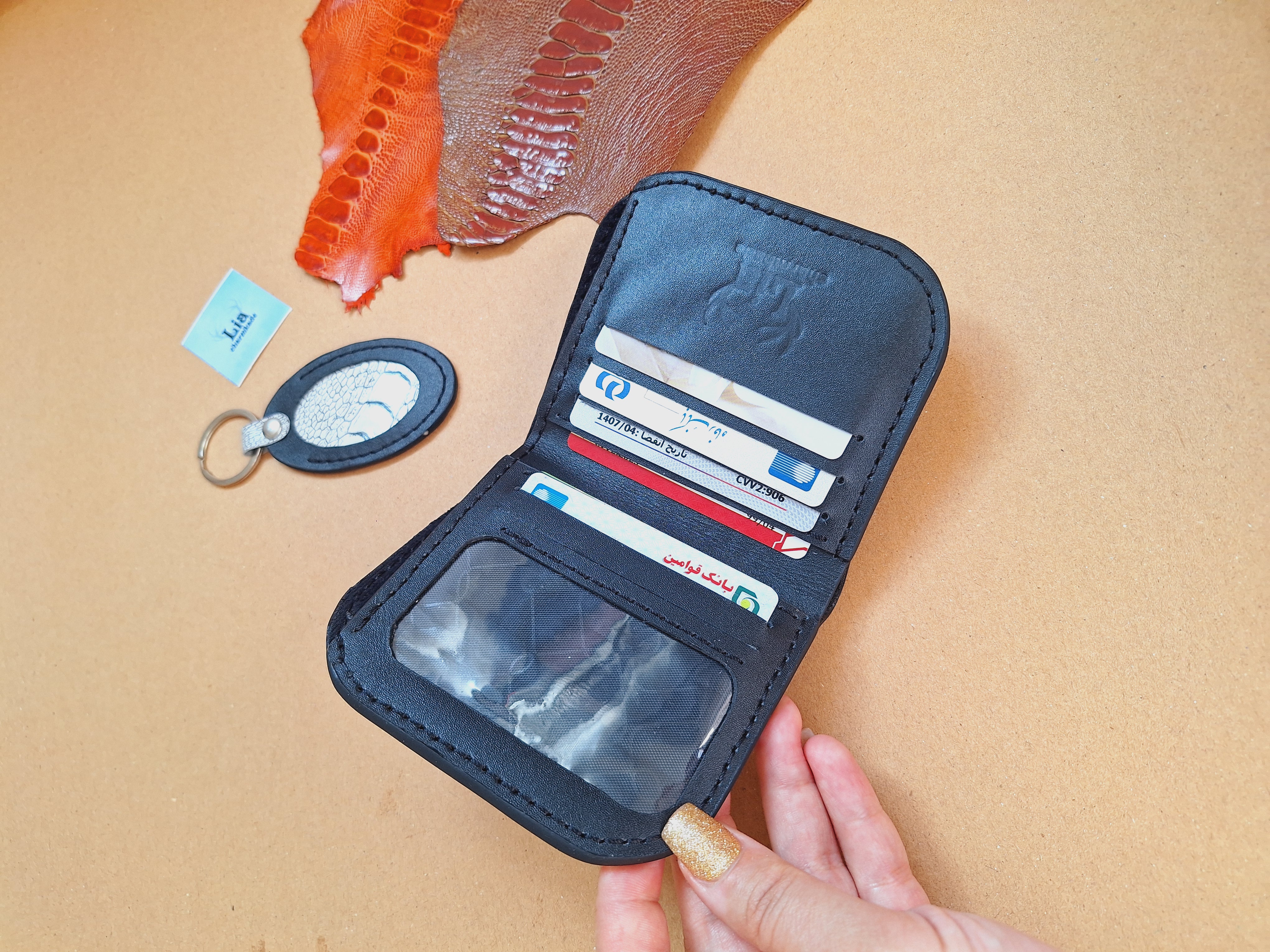 ابعاد و ظرفیت کیف جیبی: ۱۱ در ۸ با ظرفیت ۸ کارت و اسکناس و محفظه زیپی