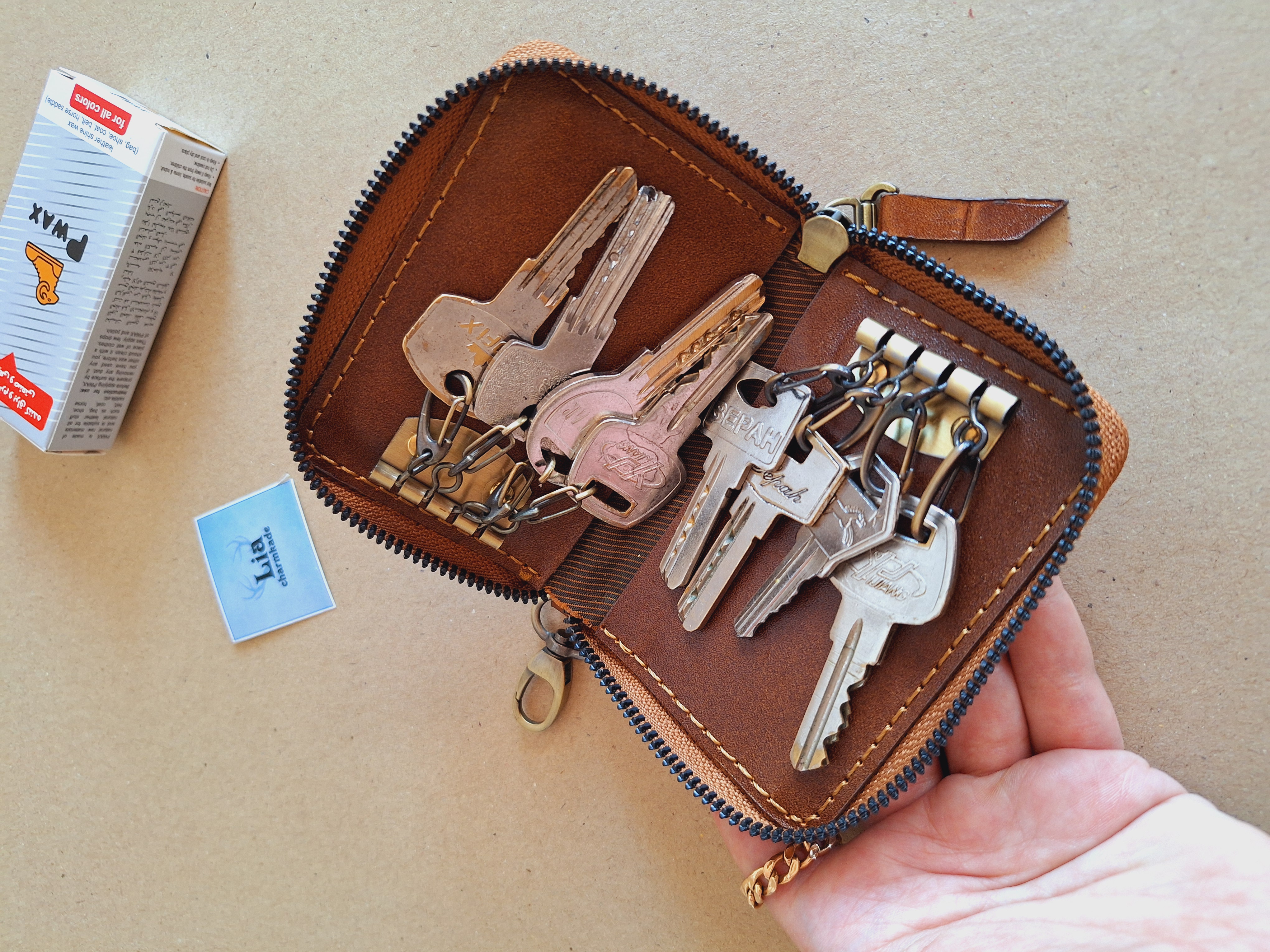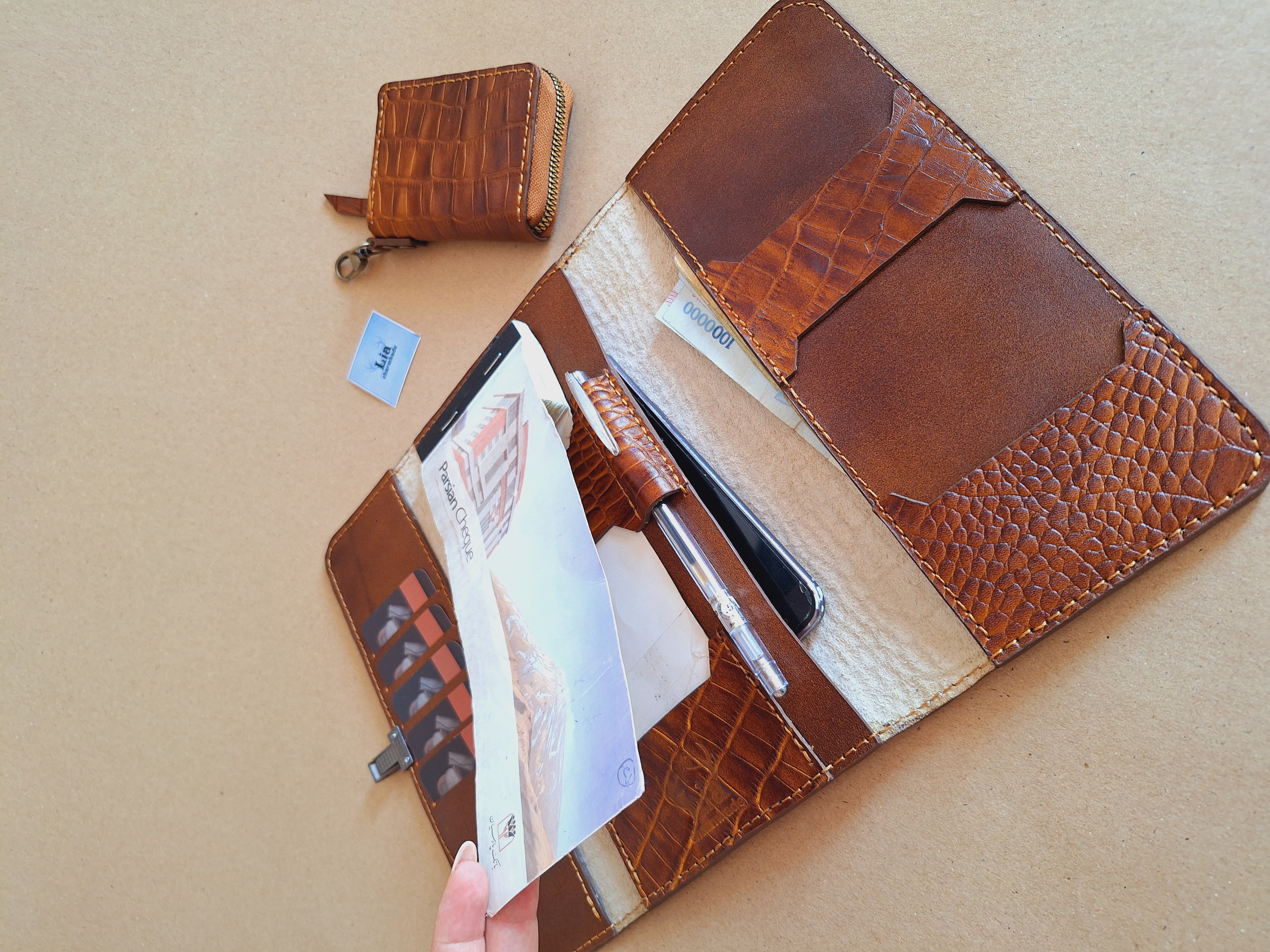 ✅️همه کارها شناسنامه اثر دارند. لذا پشت شناسنامه نگهداری اصولی از چرم نوشته شده، درصورتی که اصولی نگهداری و استفاده شود، یراق ها مشکل و خرابی ایجاد کنند تا ۶ماه عوض می شود . 💳امکان پرداخت دومرحله ای ✈️ارسال رایگان برای خرید بالای ۳میلیون تومان 🎁کنار کارهای چرمی پی واکس هدیه بگیرید‌.