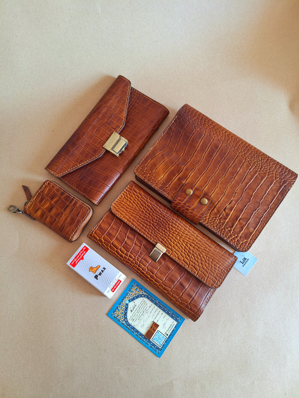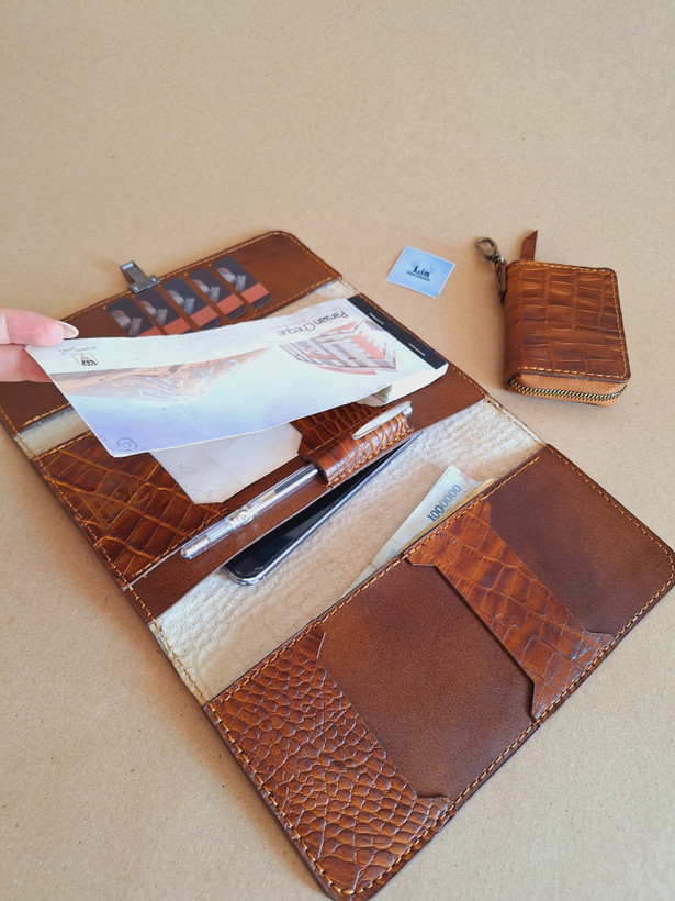 ست چرمی مردانه (جلد دفتر، کیف کلید و ریموت، آلبوم چک، کیف دسته چک ۳ لت)