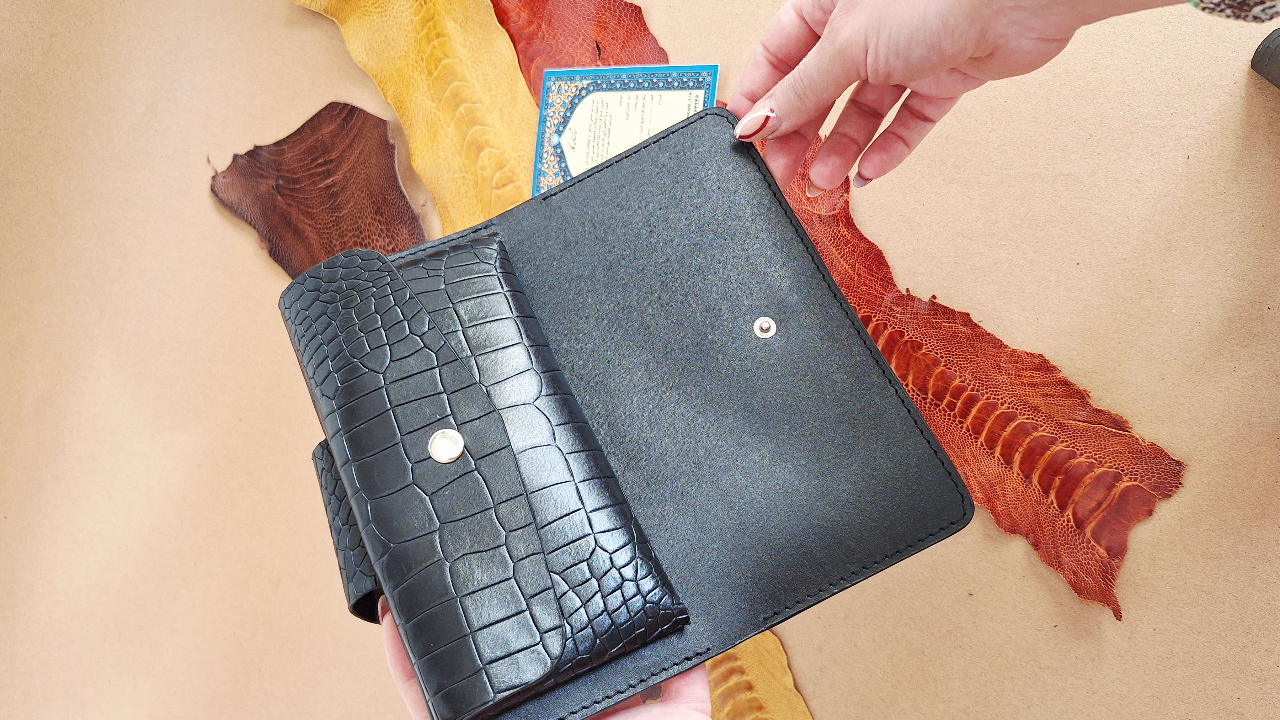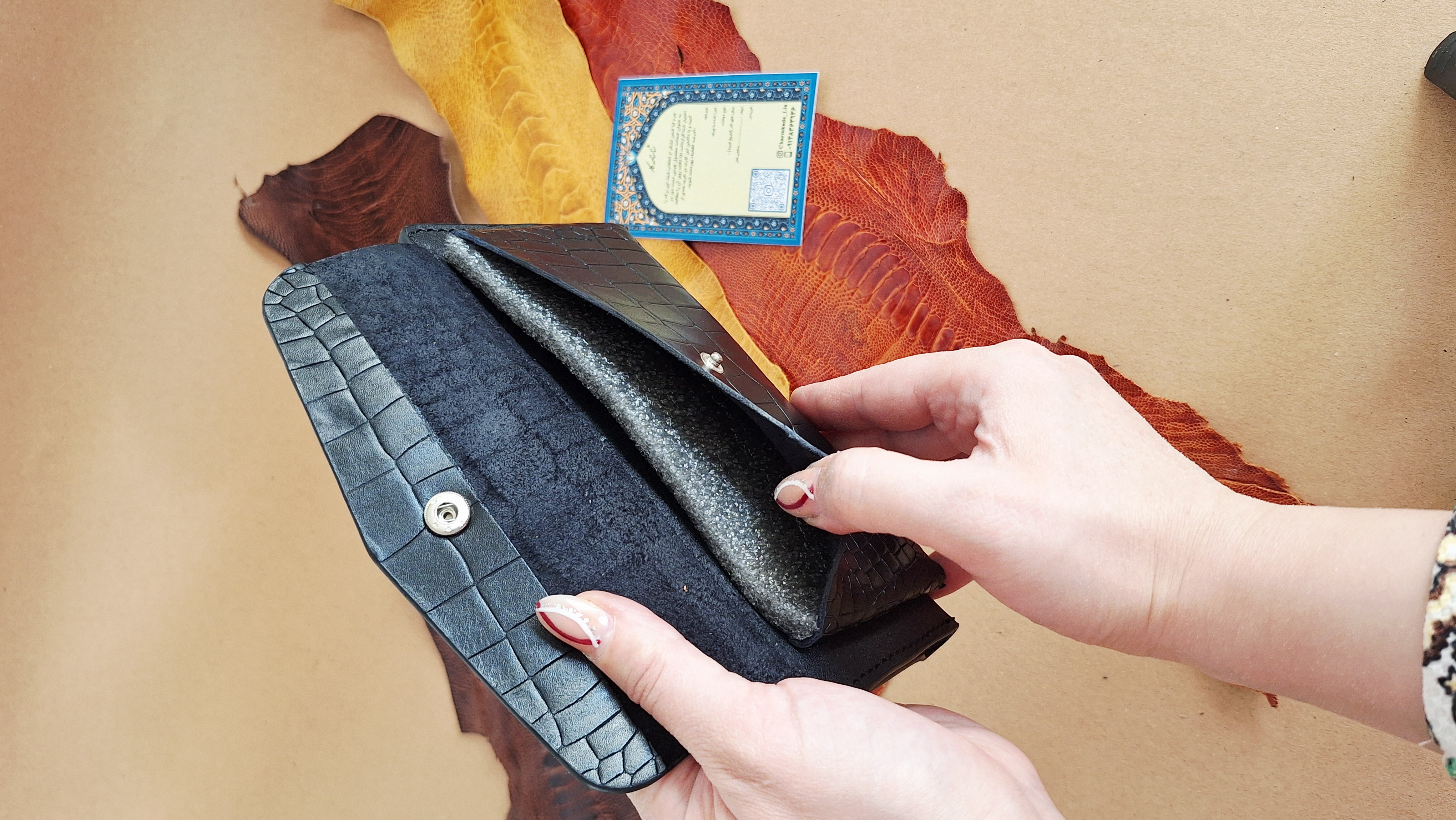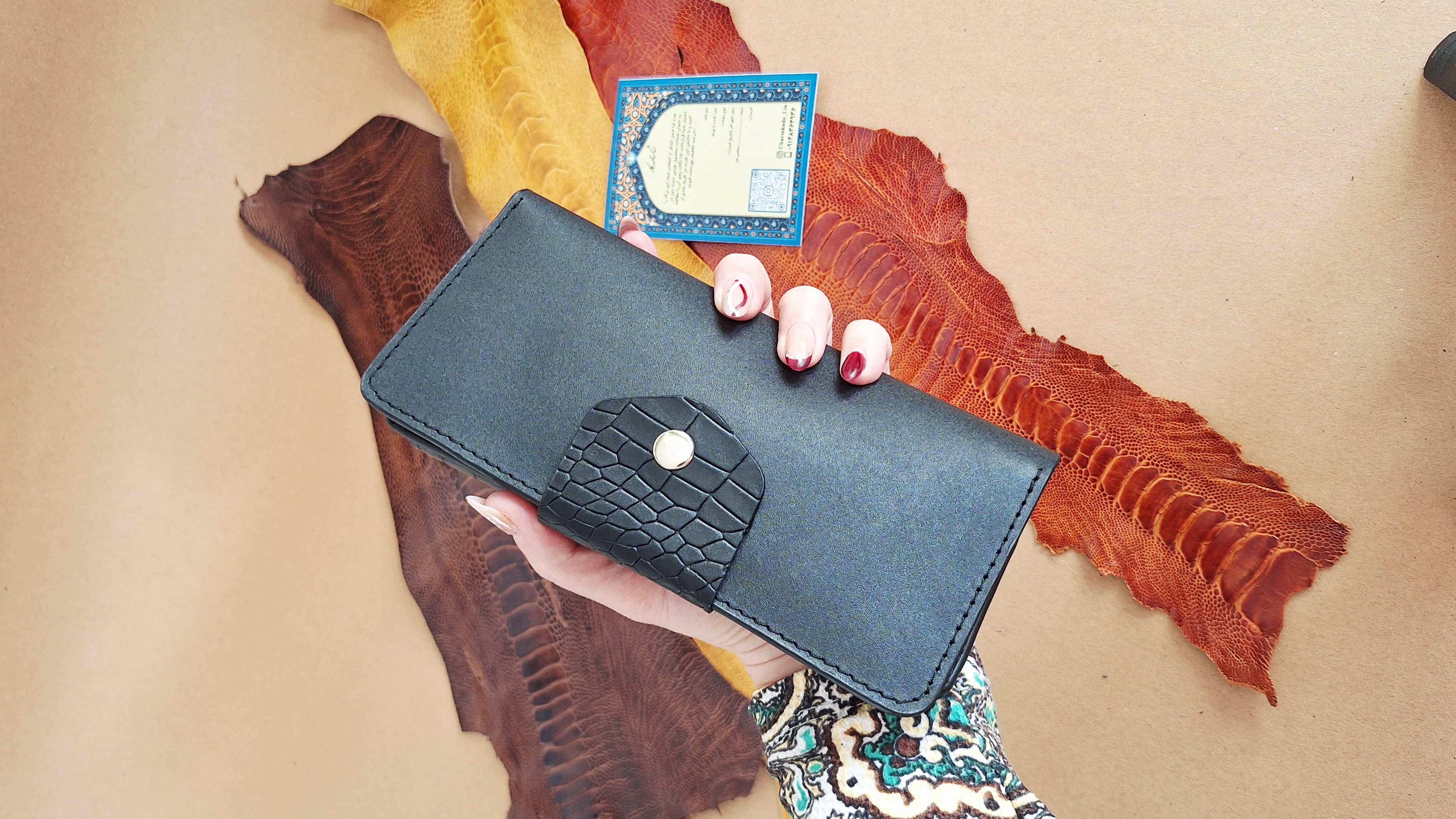 جنس: چرم طبیعی گاوی (اثری دستساز و دستدوز)