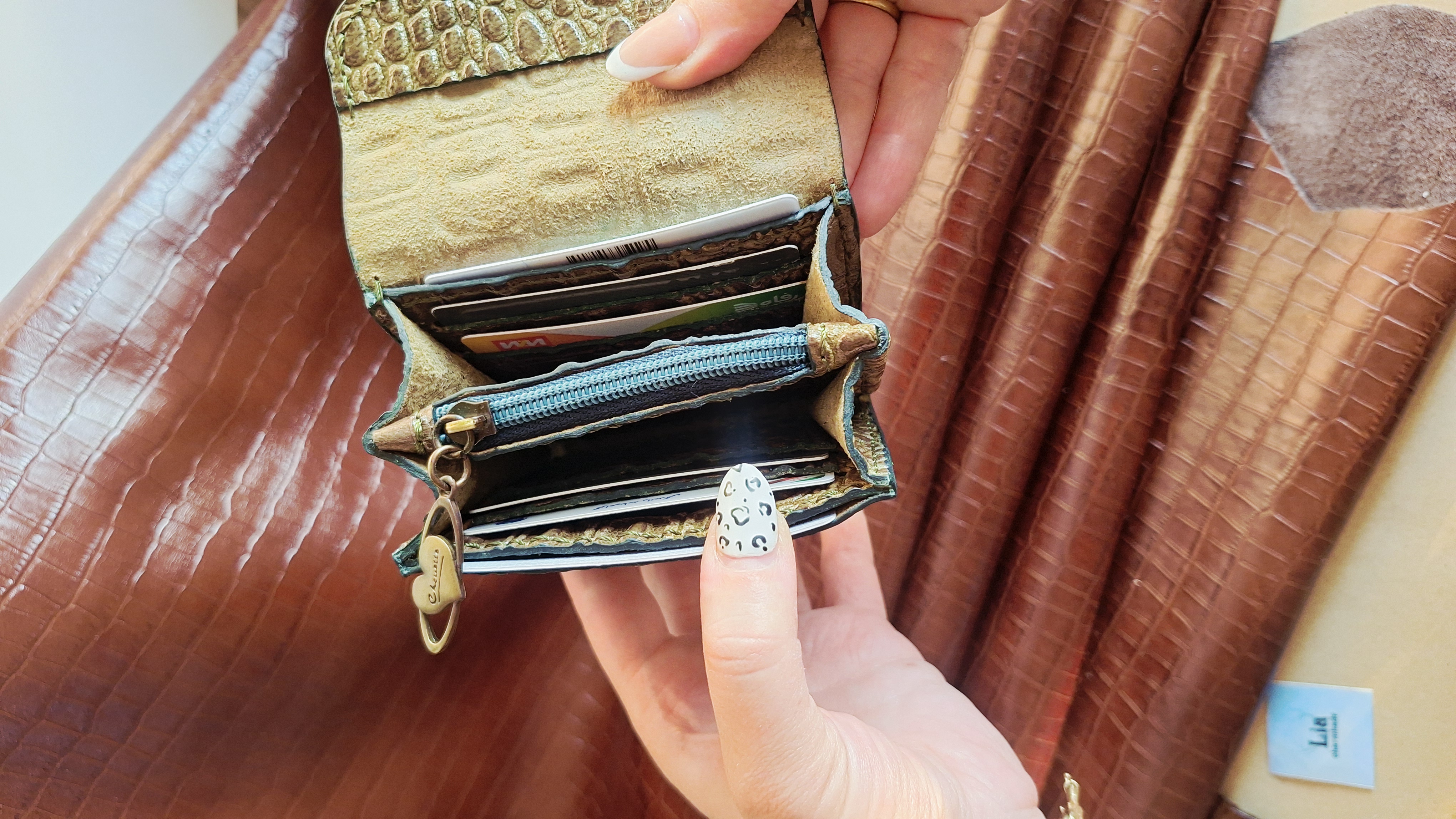 کیف پول مینی دخترانه چرم طبیعی دستدوز مناسب استفاده روزمره