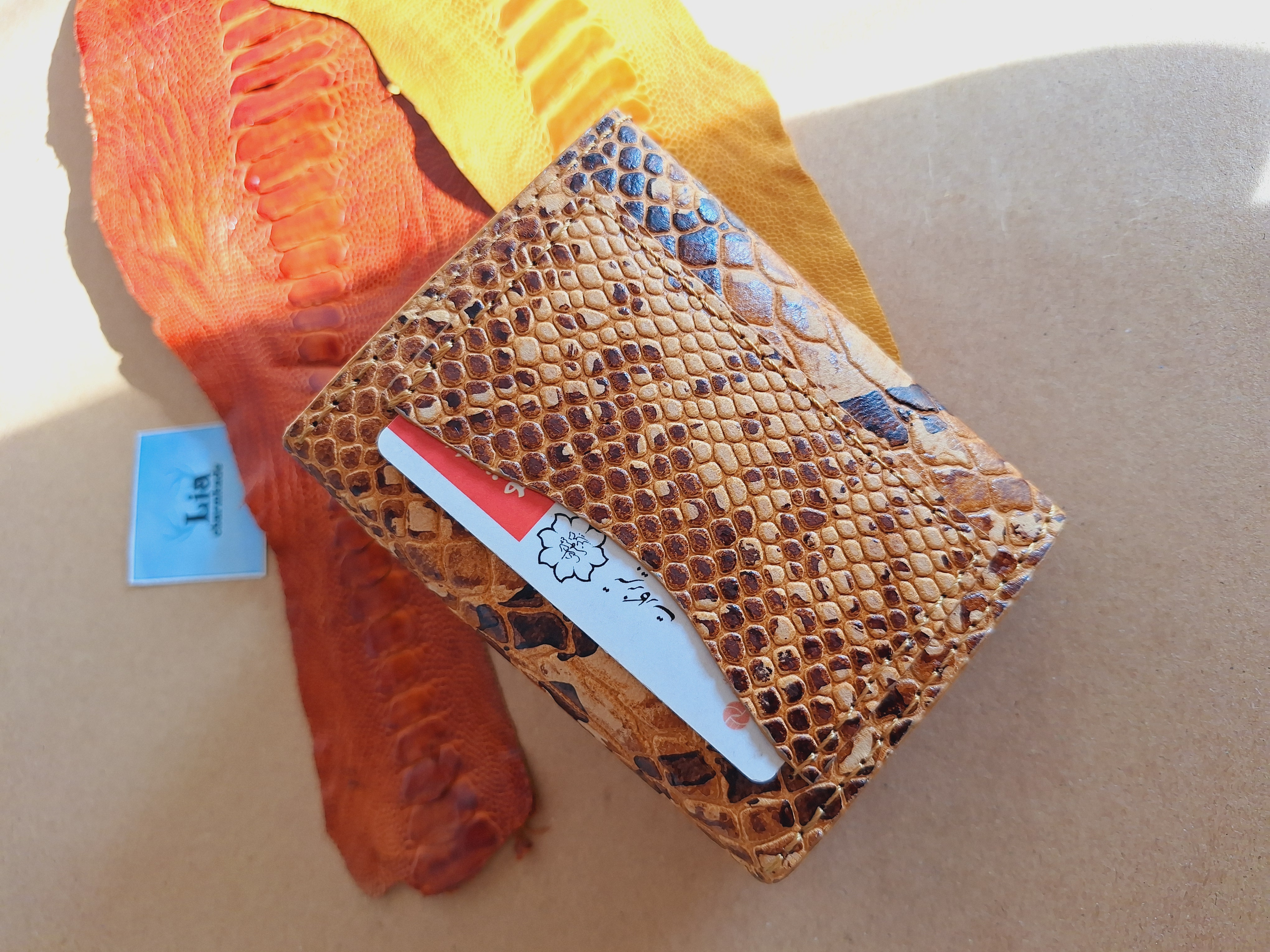 چرم بزی طرح پیتون عسلی